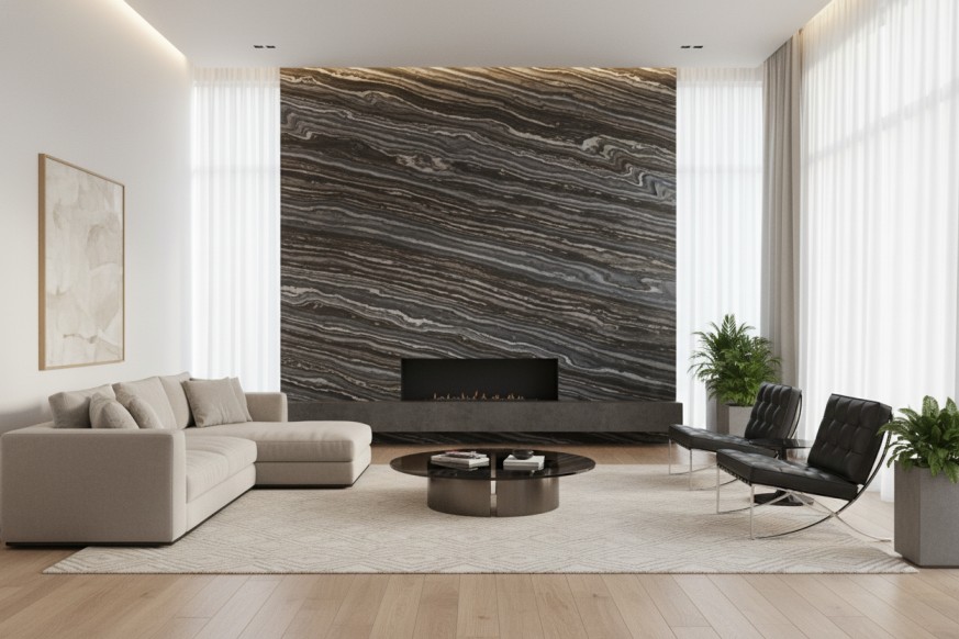 Spider Black Marble can be used in office receptions, corporate lounges, or meeting rooms. It conveys a professional and premium image. Pairing it with light gray or white walls brings both elegance and style to the office.